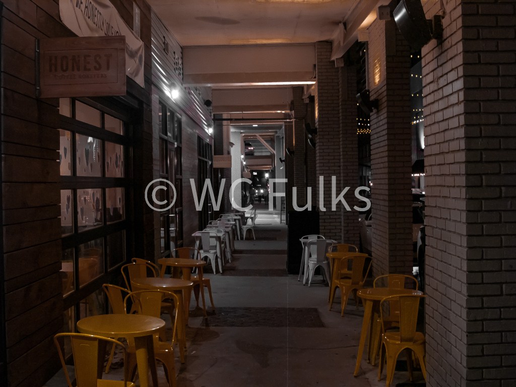 This was the first photo of the night’s adventures and I was surprised with how well it turned out, the yellow tables and chairs, the light showing through the glass. I just think it turned out really well.