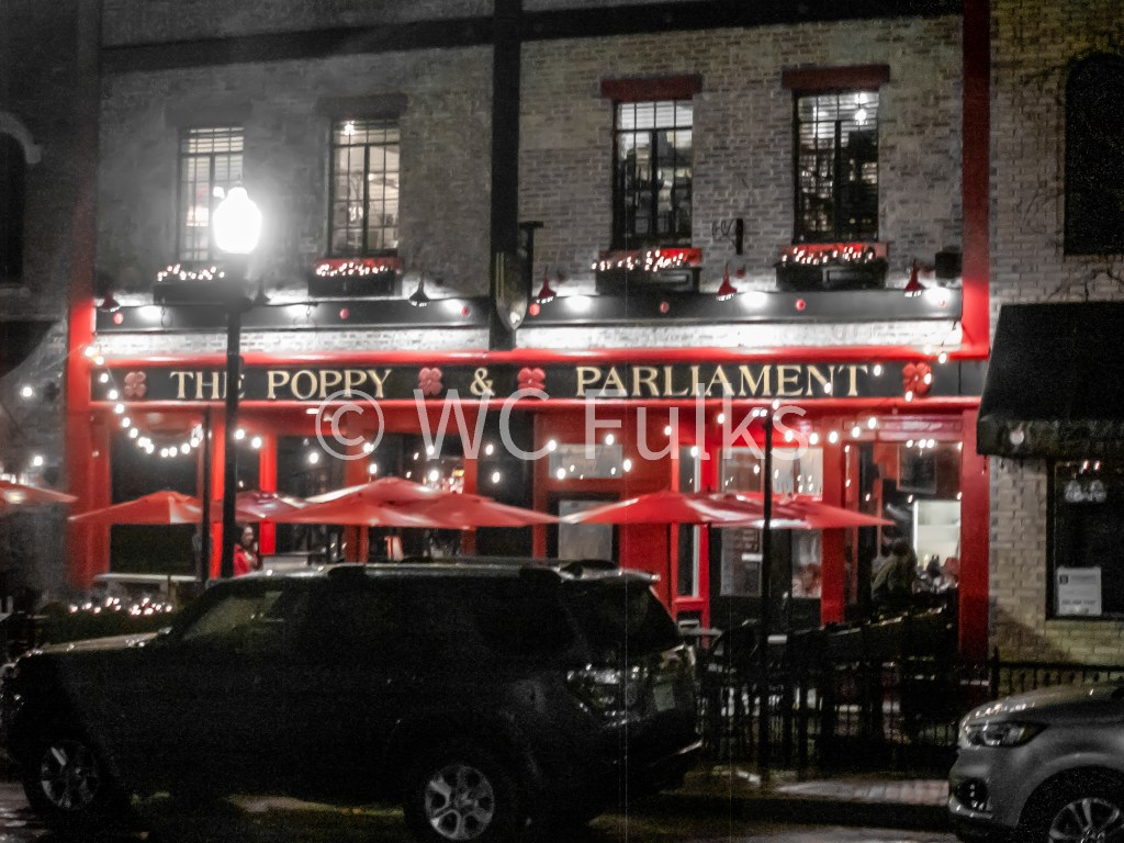 I don’t particularly know why I like this picture so much. Maybe its the lady in red in the doorway, the people sitting at the table inside dry and warm. The grain does give the photo a nice texture that I think a photo of a pub should have.